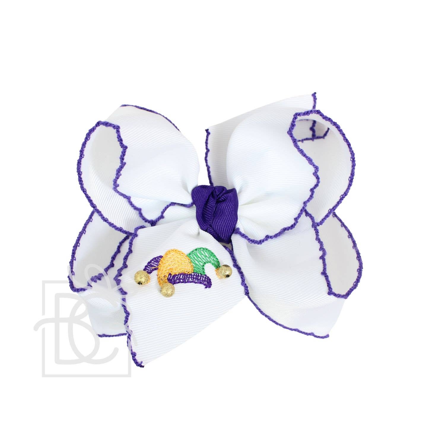 5.5" Embroidered Mardi Gras Crochet Edge Bow: Embroidered Mardi Gras Jester Hat / 5.5" Huge - 2.25" Crochet Edge Grosgrain Ribbon