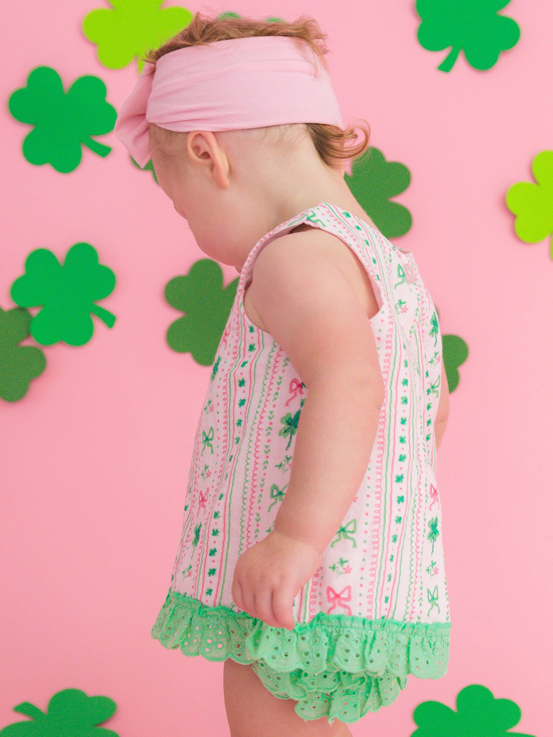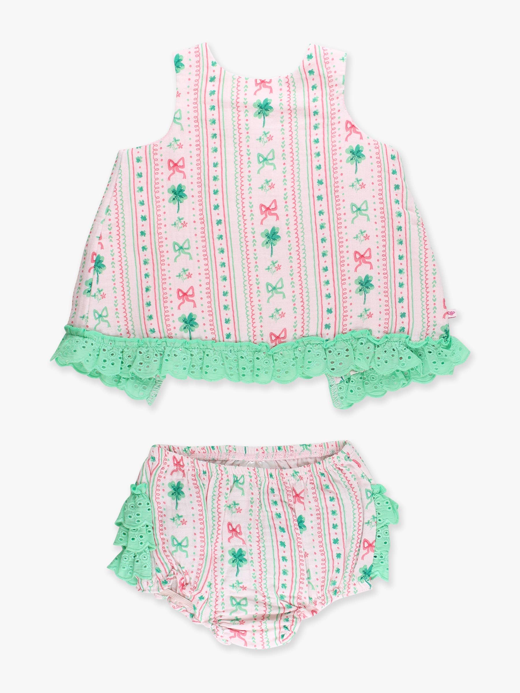 Baby Girls Clover Bows & Wishes Cotton Gauze Swing Top & Bloomer Set