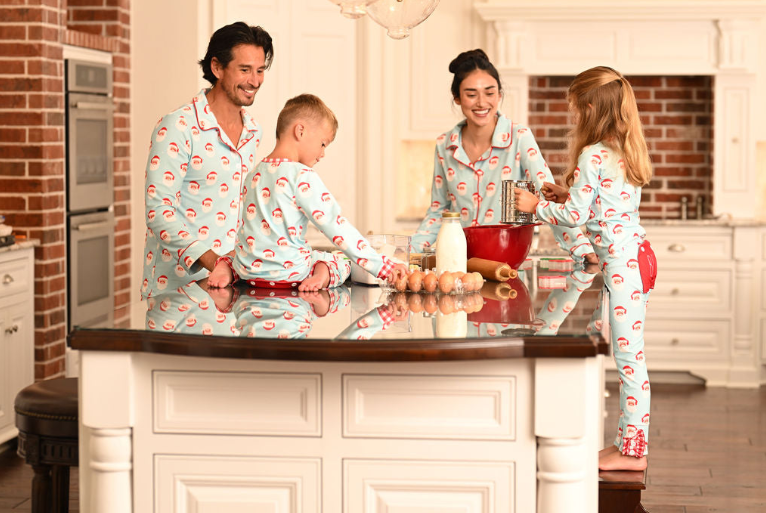 Set the stage for a magical Christmas Eve with our Vintage Santa Family Matching Christmas Pajamas Set. Inspired by old-fashioned Santa gift wrapping paper, these matching button-down pajamas feature the classic Santa face with a snowy white beard on an aqua background, sprinkled with white stars and red trim. Perfect for kids, couples, and family members of all ages.