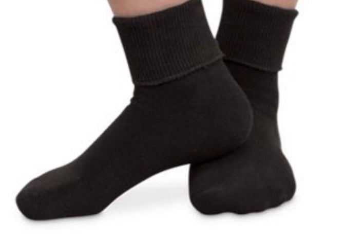 Black turn cuff smooth toe socks one pair