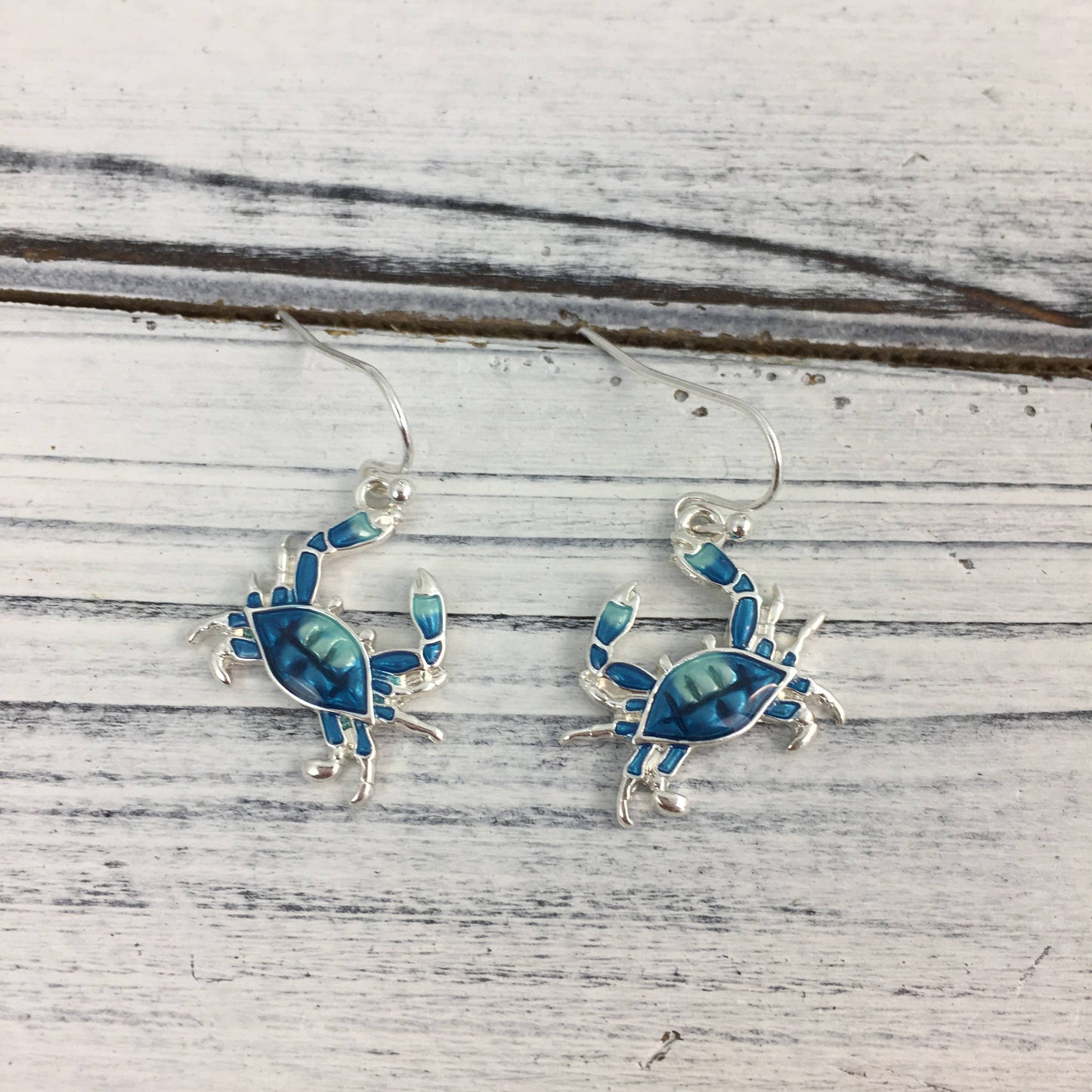 These are our dainty blue crab earrings! They are small and elegant making them perfect for fashionable, everyday wear!