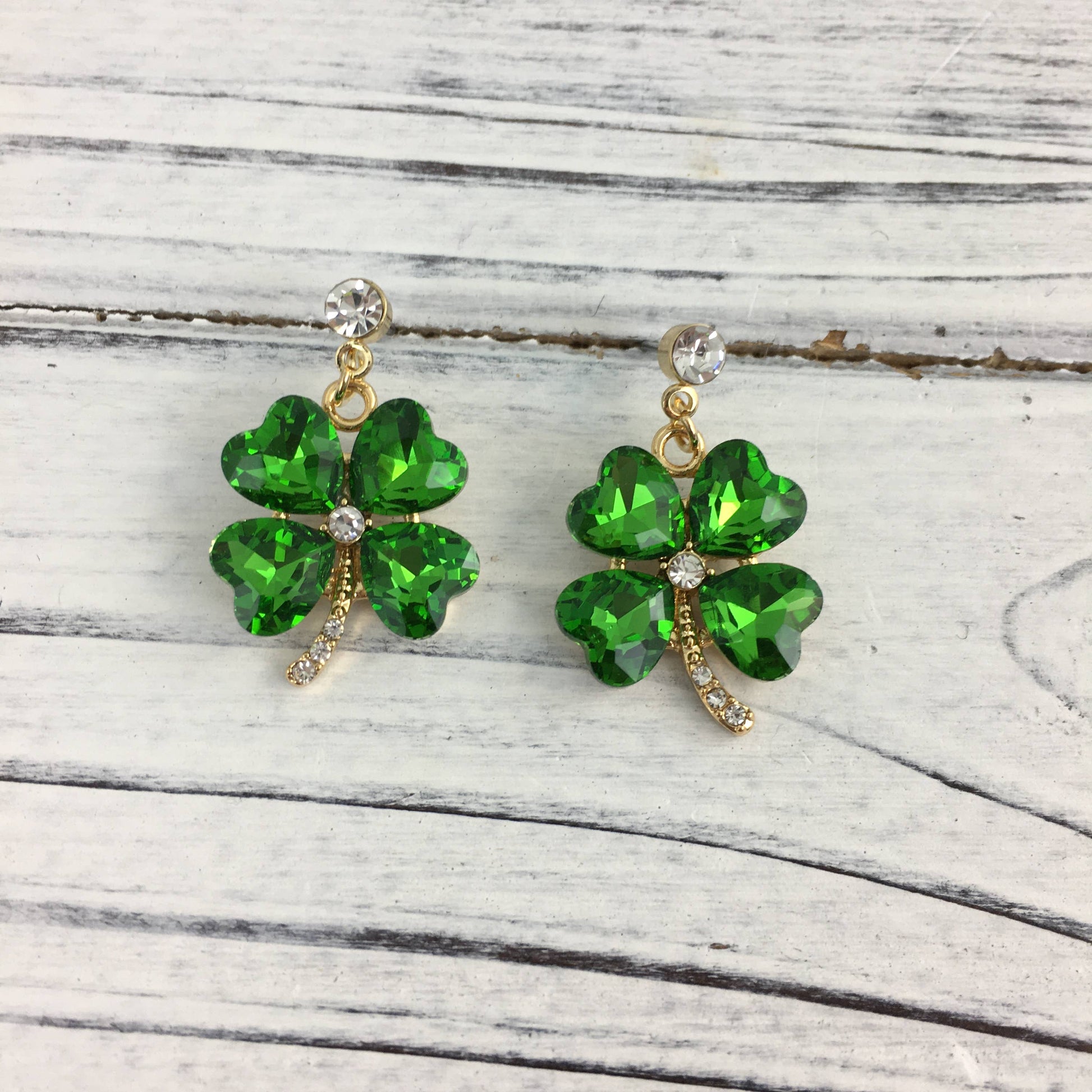These four leaf clover post earrings are made of very pretty, green stones. They are a beautiful accessory for St. Patrick's day! Also available as post earrings.