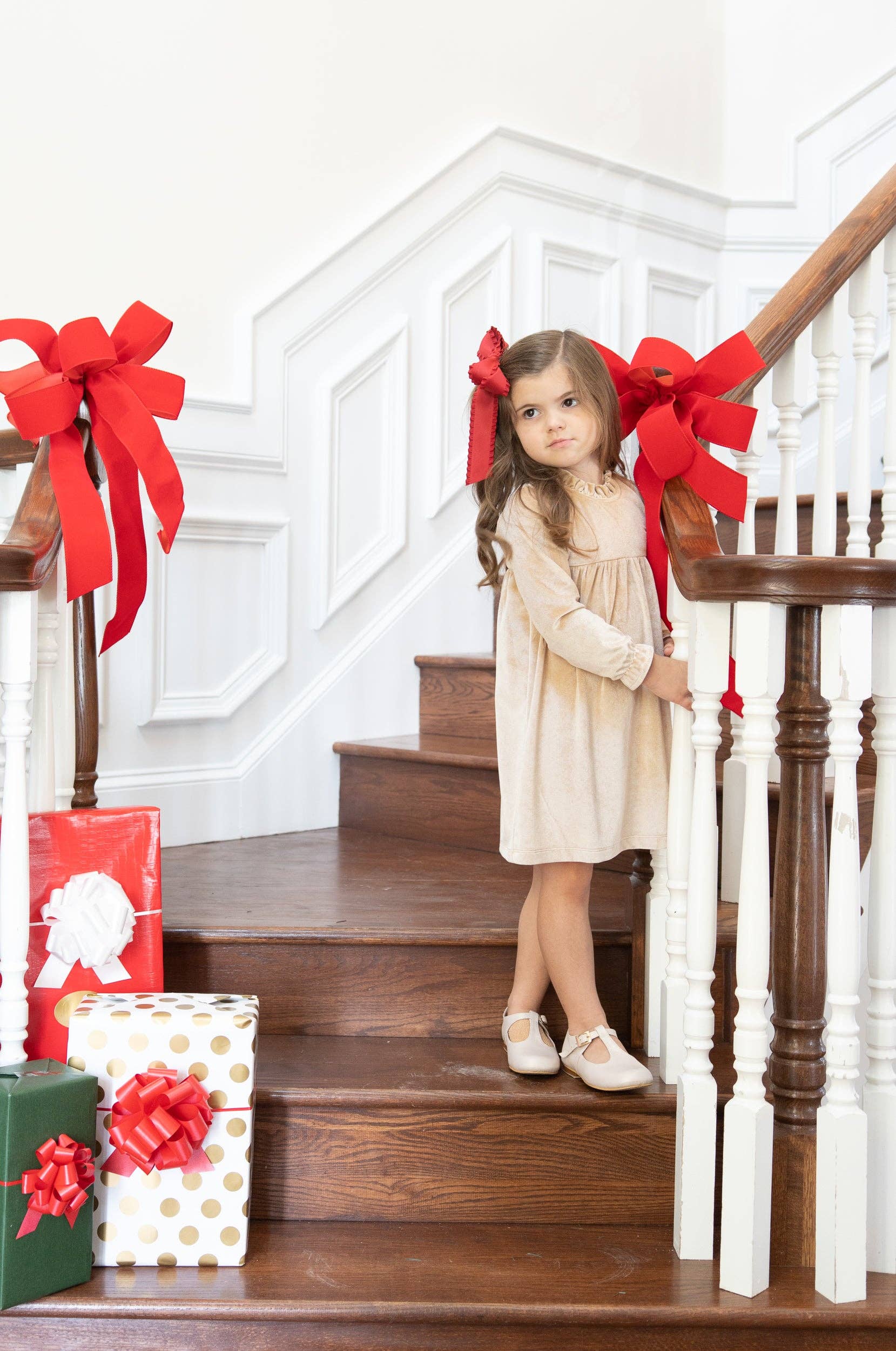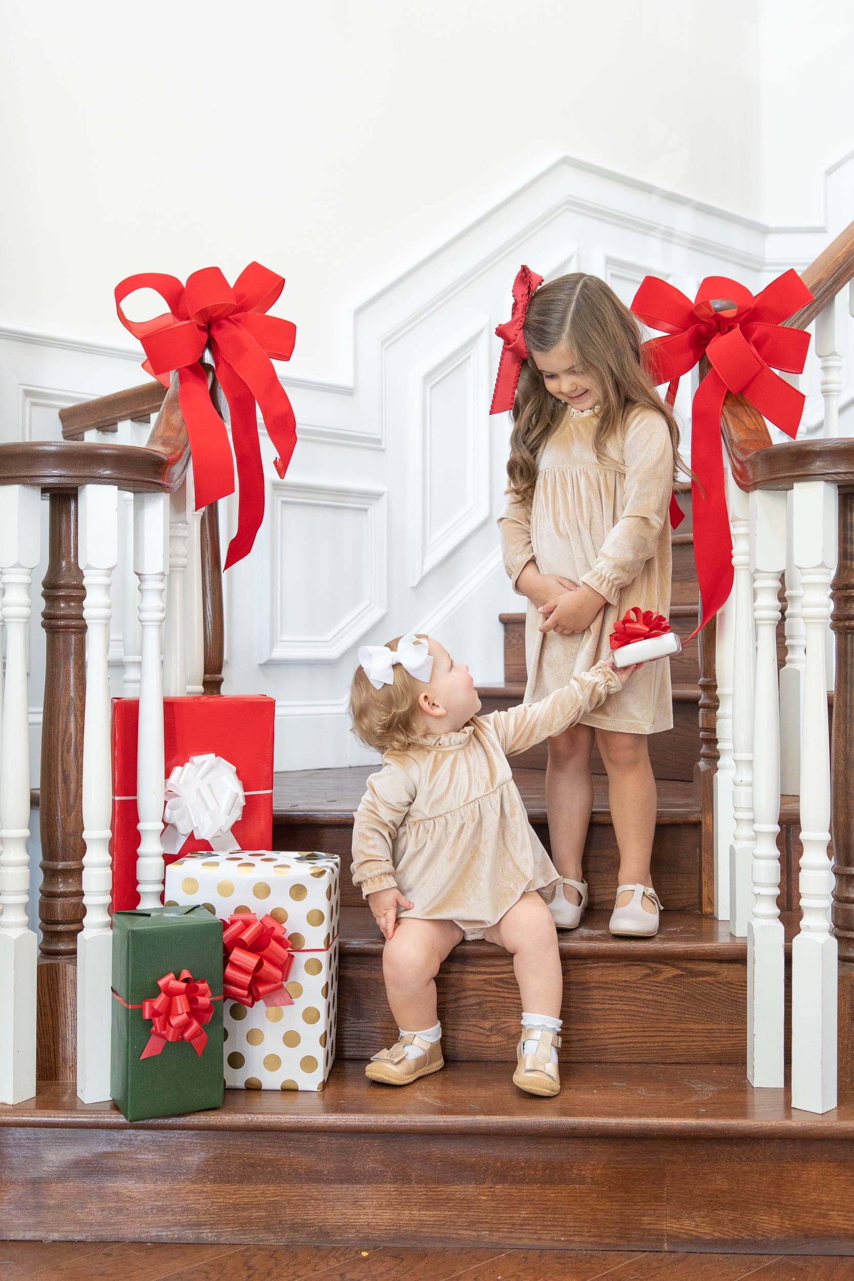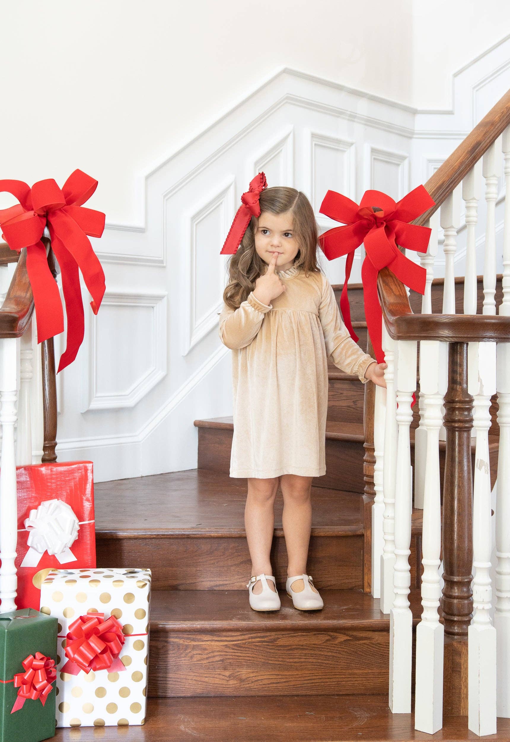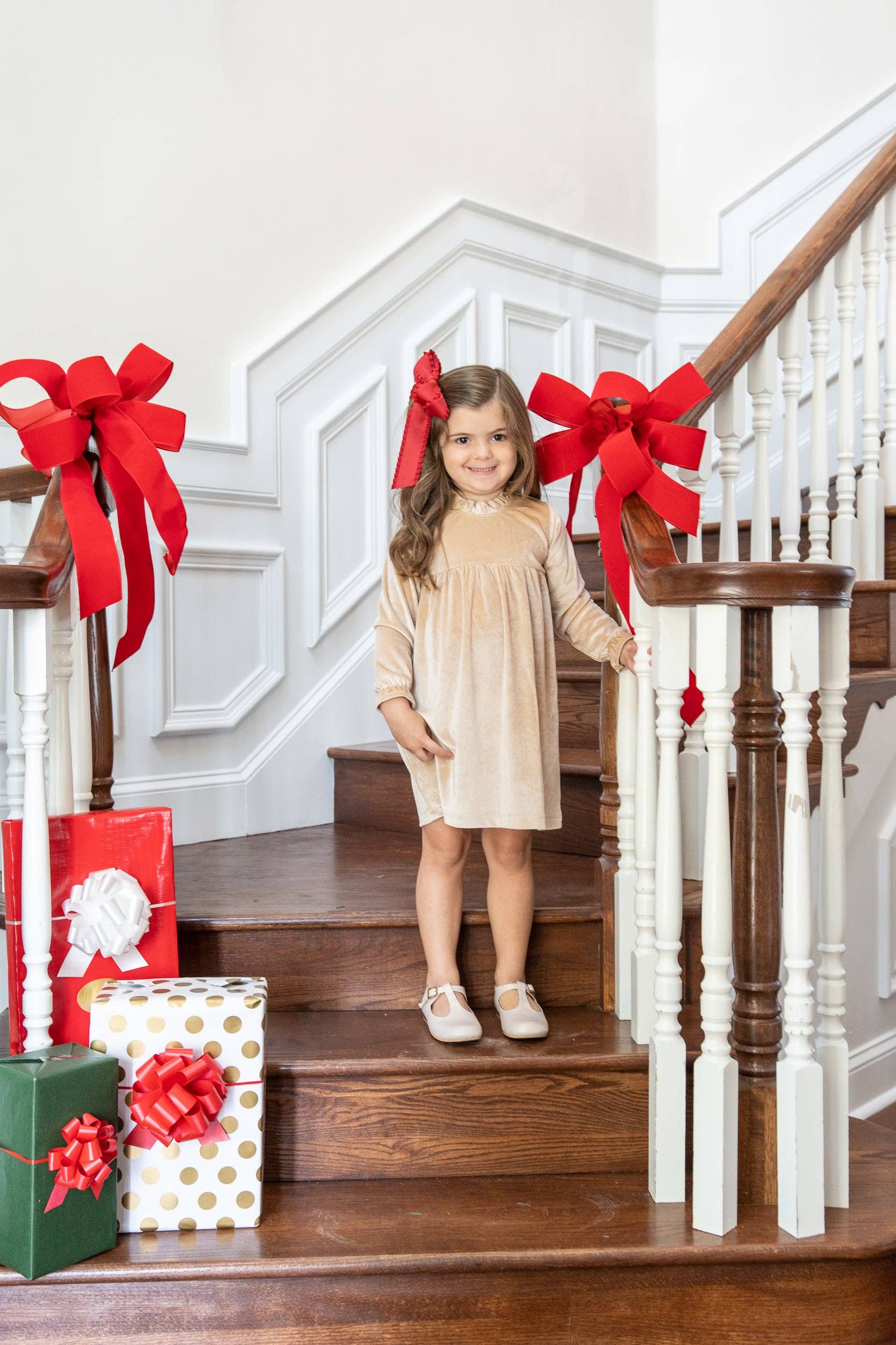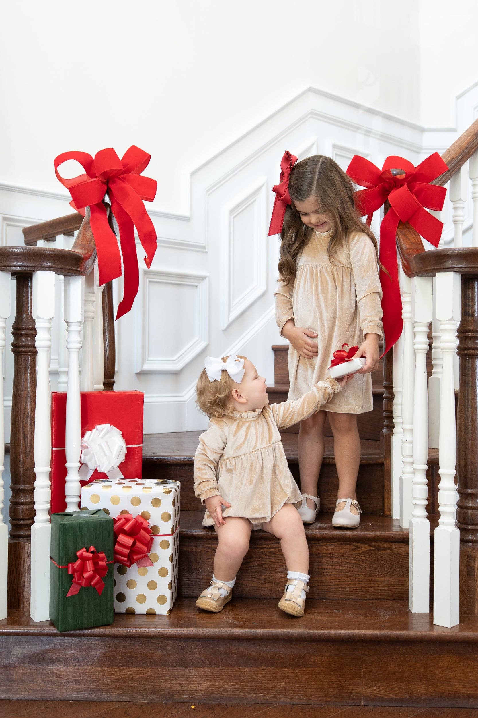 Is your little girl a fashionista? Get her the Kaitlin Champagne Velvet Dress and give her the chance to look like a true Hollywood starlet. Gorgeous velvet fabric, long sleeves, and a stunning high neck, this dress is so classy yet so chic. She'll have all eyes on her! We also have the matching little sister bubble!