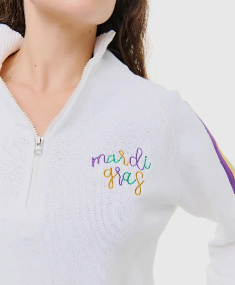 Ladies and Kids Mardi Gras Quarter Zip Sweater