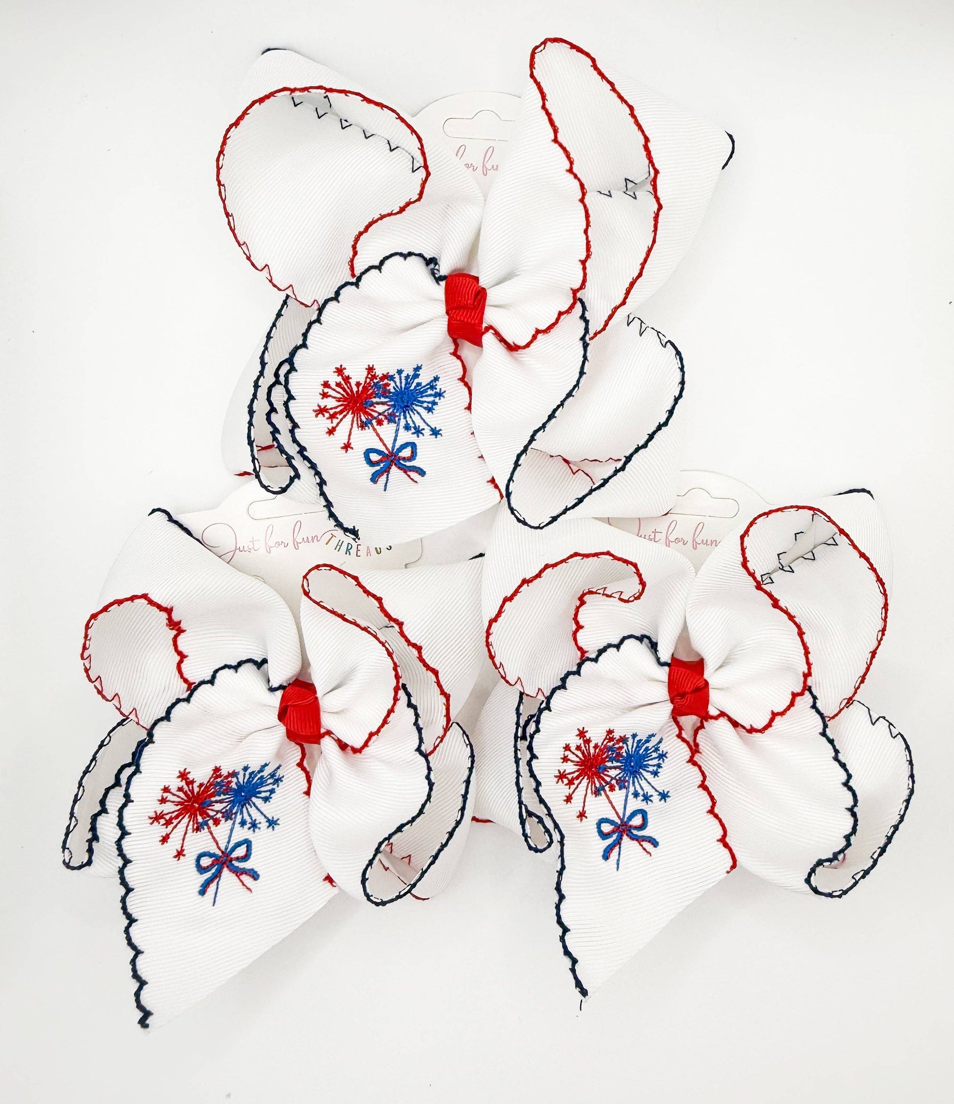 Sparkler Embroidered Moonstitch Bow: 6 inch