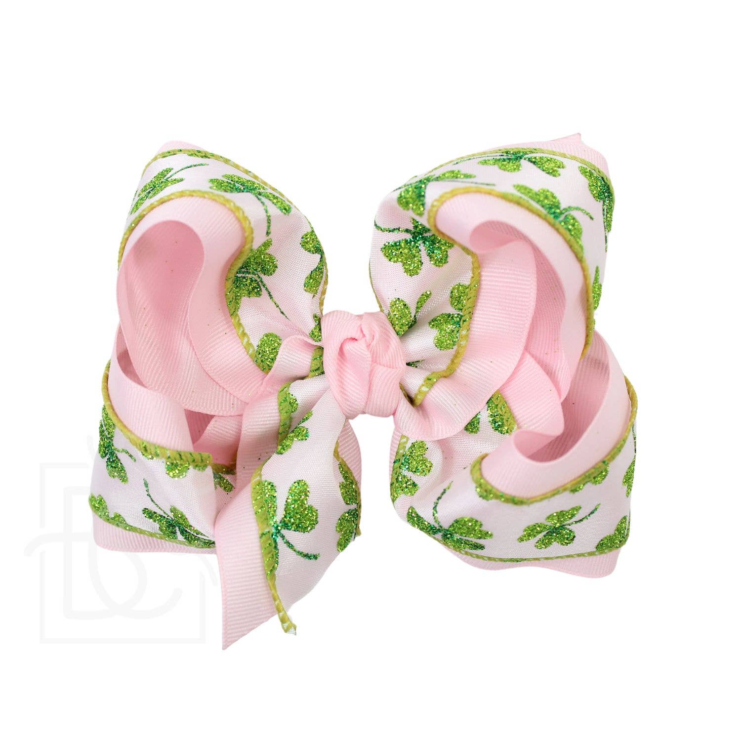 ST. PATRICK'S LIGHT PINK/GLITTER CLOVER BOWS ON ALLIGATOR CLIP
