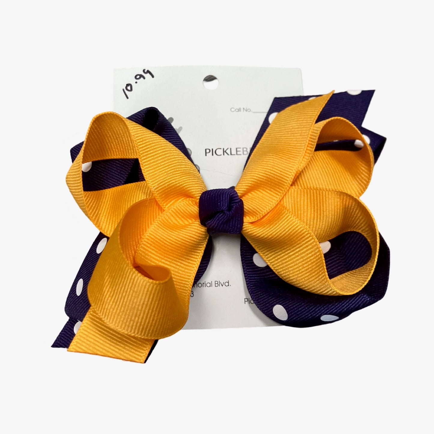 Yellow and Purple Polka dot bow (5 in.)